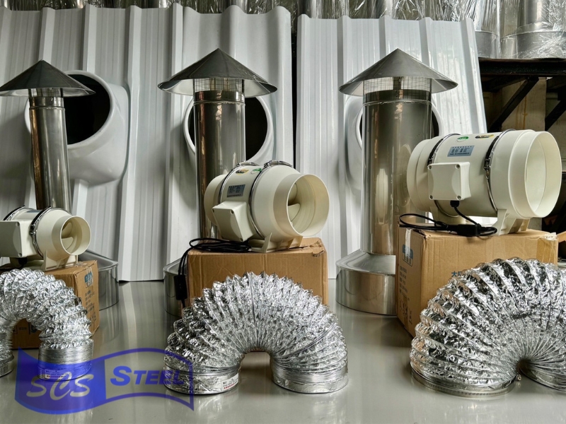 - นำอุปกรณ์หมวกจีน เชื่อมต่อกับท่อแว๊กซ์ เชื่อมไปยังท่อดูดควันอาหาร ทำให้กลิ่นและคราบสกปรกไม่ค้างอยู่ฝ้า