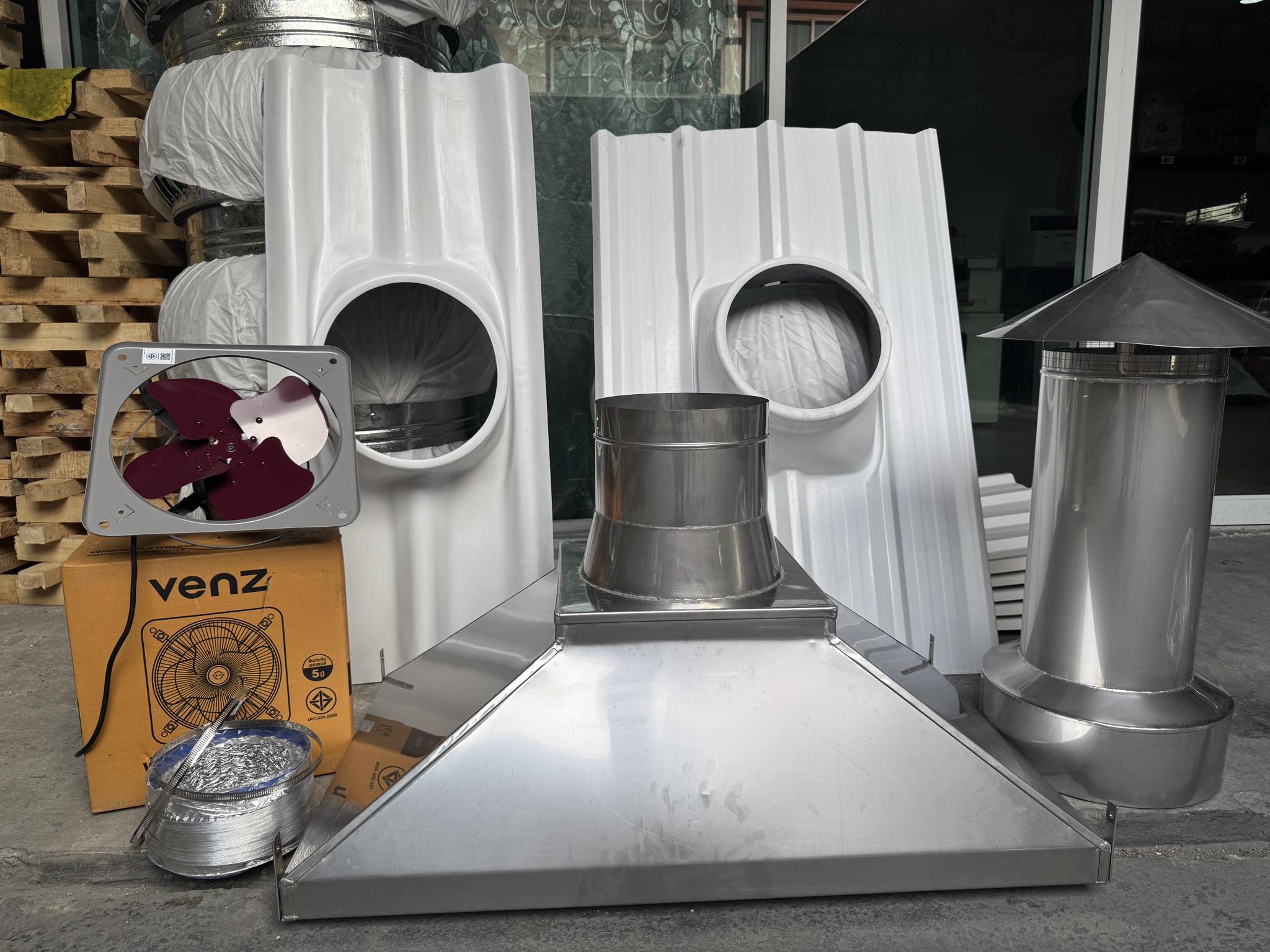 - นำอุปกรณ์หมวกจีน เชื่อมต่อกับท่อแว๊กซ์ เชื่อมไปยังท่อดูดควันอาหาร ทำให้กลิ่นและคราบสกปรกไม่ค้างอยู่ฝ้า